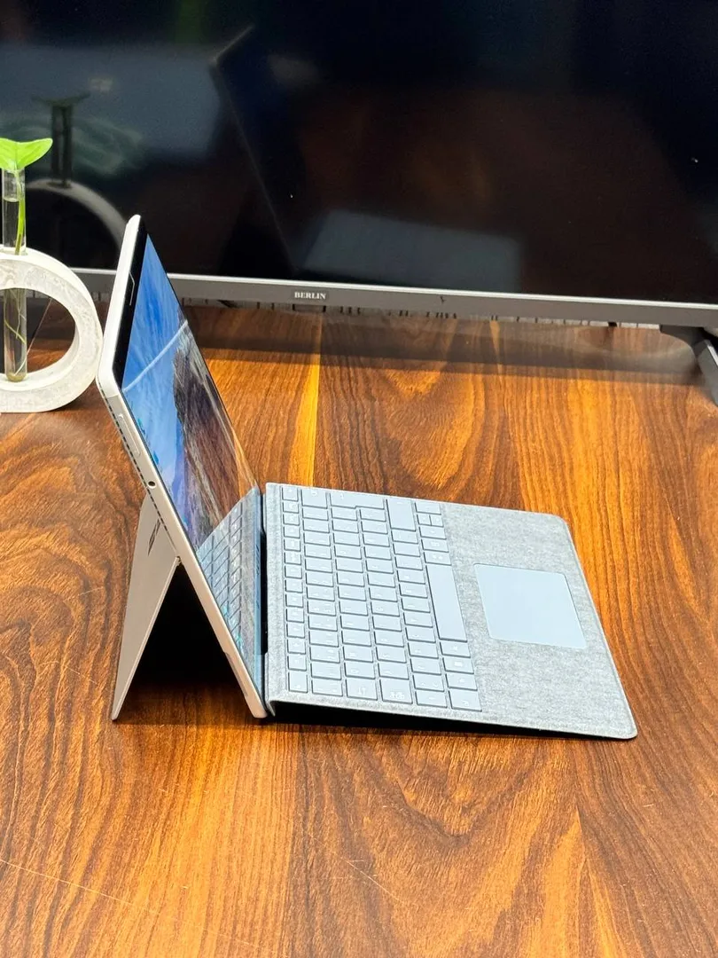 Surface Pro 8 با طراحی آلومینیومی آنودایز شده، ظاهری مدرن و مقاوم دارد. صفحهنمایش ۱۳.۳ اینچی آن با وضوح بالا و نرخ نوسازی ۱۲۰ هرتز، تجربه بصری روان و واضحی را ارائه میدهد. این دستگاه با وزن سبک و ابعاد مناسب، برای استفاده در سفر و محیطهای کاری ایدهآل است.